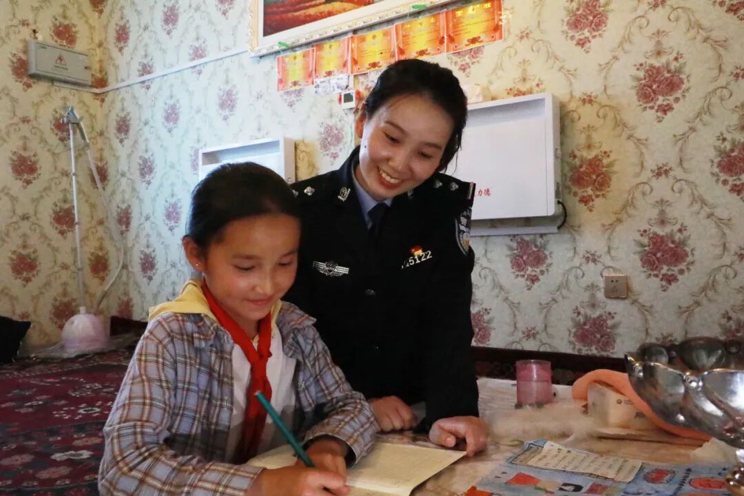 “西極愛心小分隊(duì)”家訪后了解到阿麗娜的家庭情況,民警沈美穎便成為這位柯爾克孜族姑娘的“知心姐姐”,多次到家中輔導(dǎo)功課,通過聊天談心鼓勵(lì)阿麗娜認(rèn)真學(xué)習(xí)。