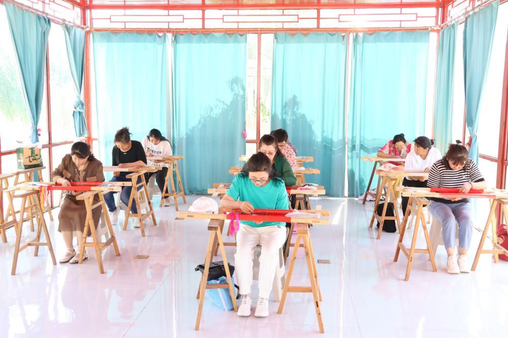 在內(nèi)蒙古自治區(qū)科爾沁右翼中旗蒙古族刺繡產(chǎn)業(yè)園車間內(nèi),由蒙古族、漢族、朝鮮族、達斡爾族繡工們坐在繡花撐子前各顯身手。