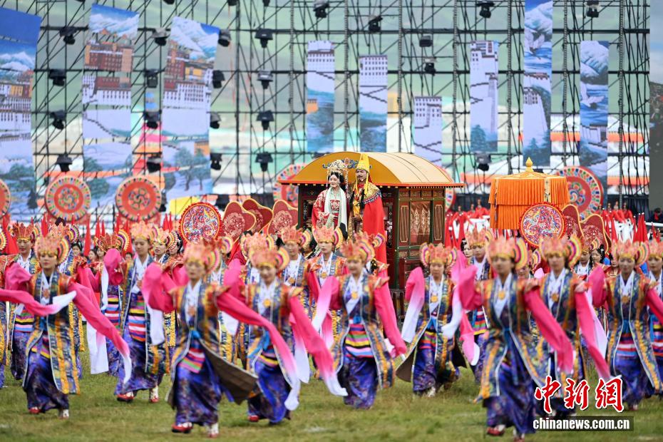 圖為開幕式現(xiàn)場南木特藏戲“文成公主進(jìn)藏”演出。中新社記者 九美旦增 攝