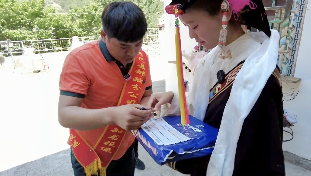 投遞員向西繞拉姆確認(rèn)信息。