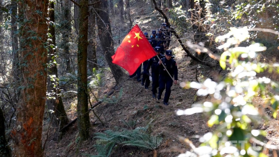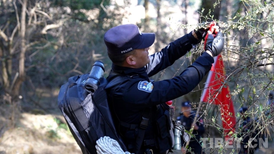 這一路,所謂好走的路,也只夠一人挺直身子通過。更多時候,我們必須手腳并用——腳下是打滑的碎石。手緊抓著巖縫里的草石,一步,一步,往前挪。巡邊途中的原始叢林間,無數(shù)或新或舊的紅繩系于冷杉枝頭,蜿蜒指向中尼邊境46號界樁的方向——這是民警們用腳步反復確認的“生命航線”。