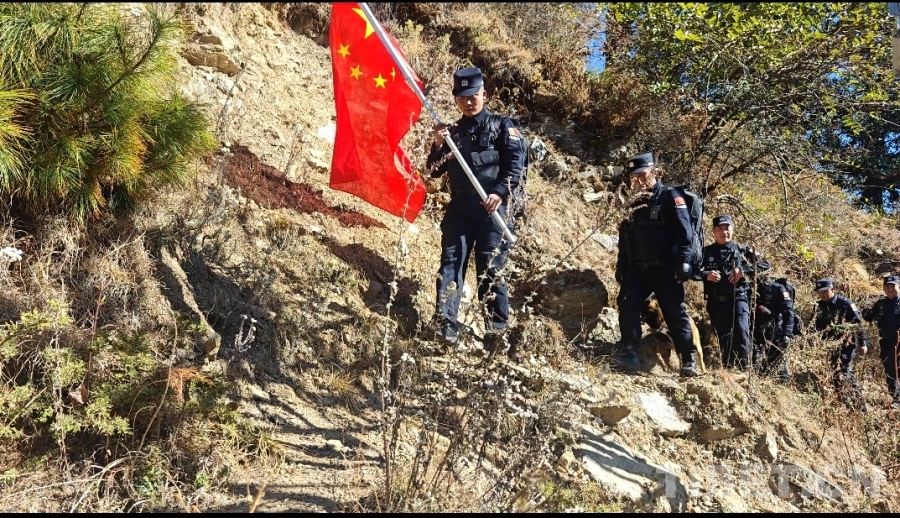 圖為民警們徒步前往中尼邊境46號界樁