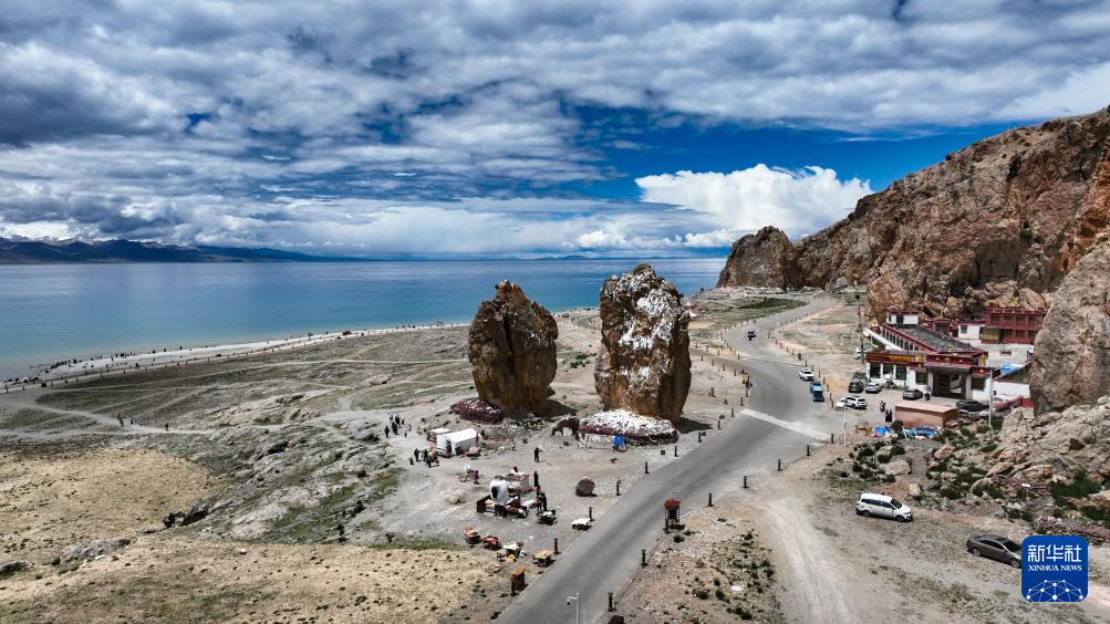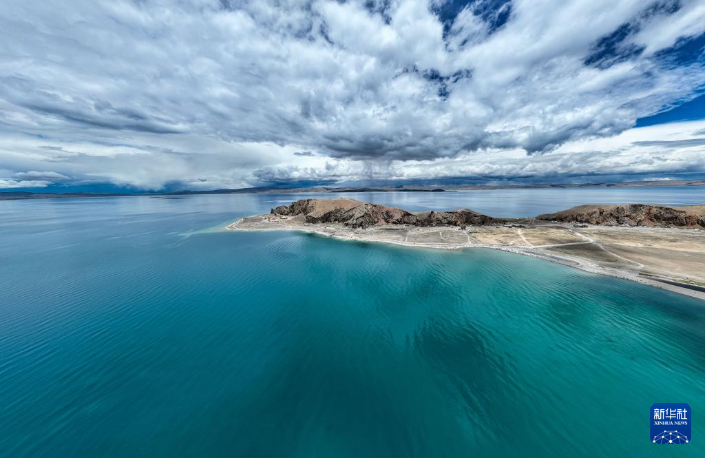 7月16日拍攝的納木錯扎西島景區(qū)風(fēng)光(無人機照片)。新華社記者 晉美多吉 攝 ??