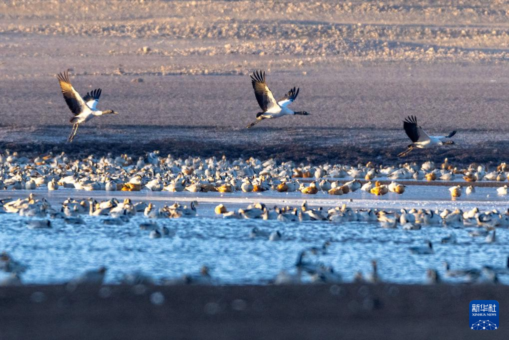 冬日時(shí)節(jié),拉薩市林周縣迎來(lái)大批越冬候鳥(niǎo),黑頸鶴、斑頭雁、赤麻鴨等候鳥(niǎo)在河谷、湖泊等地覓食、休憩。