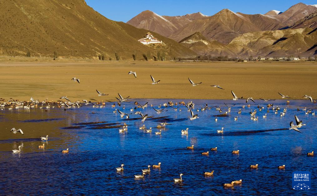 這是11月23日在西藏拉薩市林周縣拍攝的越冬候鳥(niǎo)。新華社記者 李鍵 攝