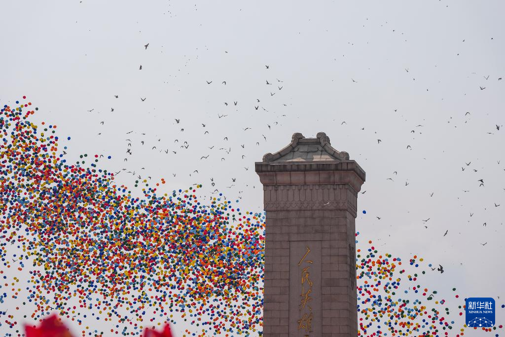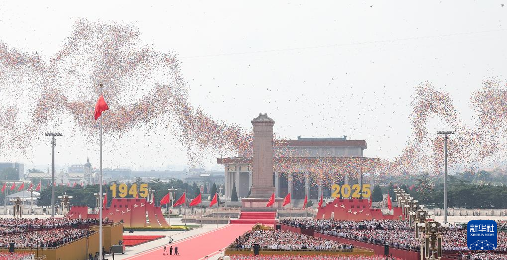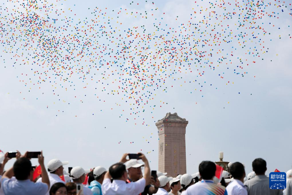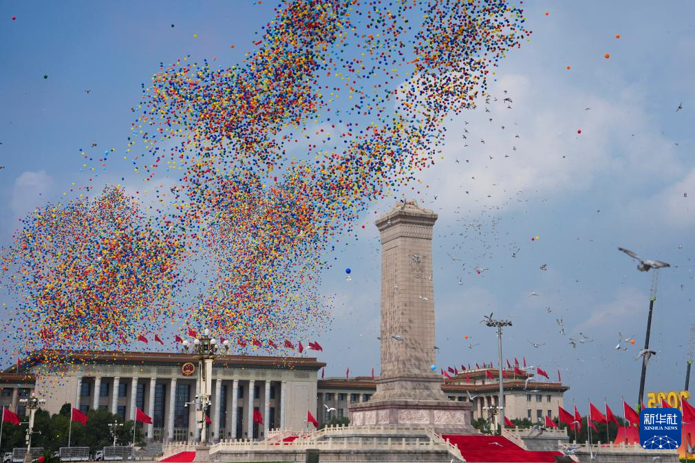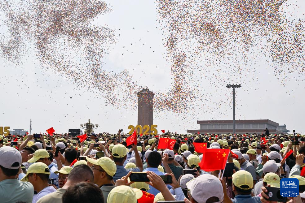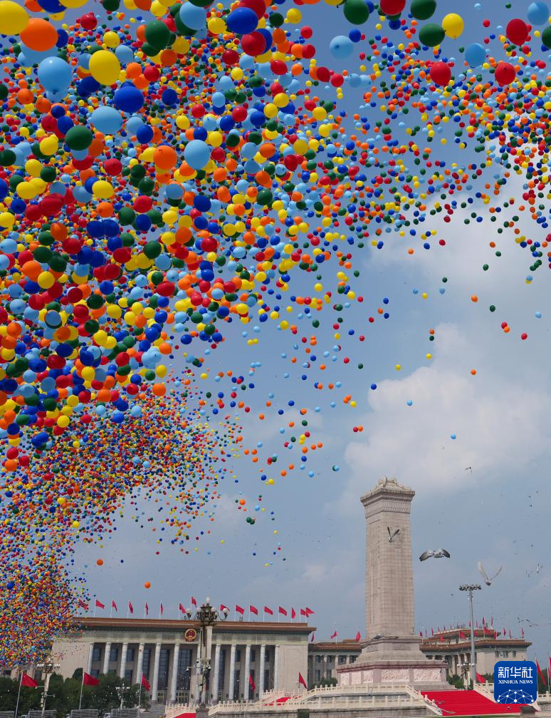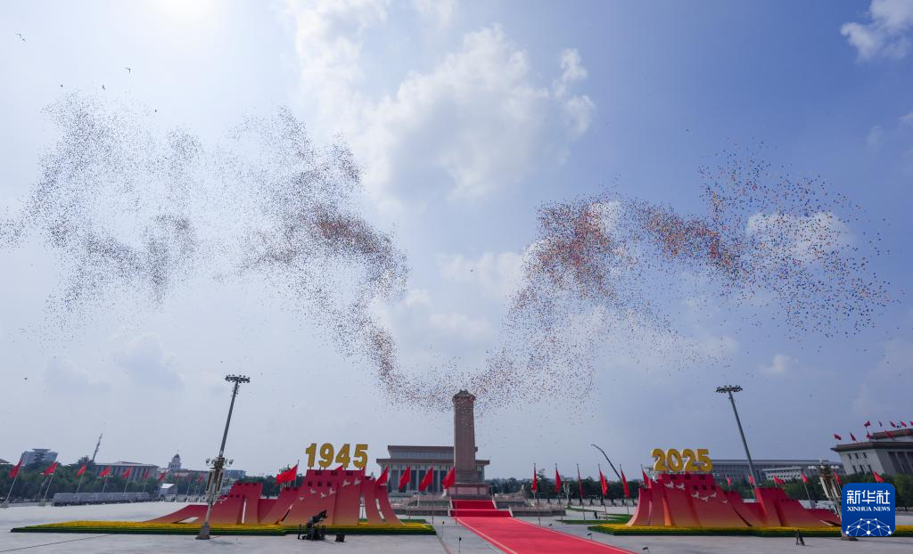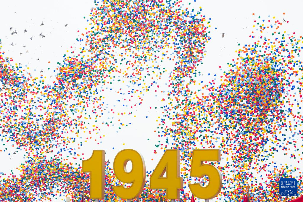 9月3日,紀念中國人民抗日戰(zhàn)爭暨世界反法西斯戰(zhàn)爭勝利80周年大會在北京隆重舉行。這是紀念大會現(xiàn)場放飛氣球。