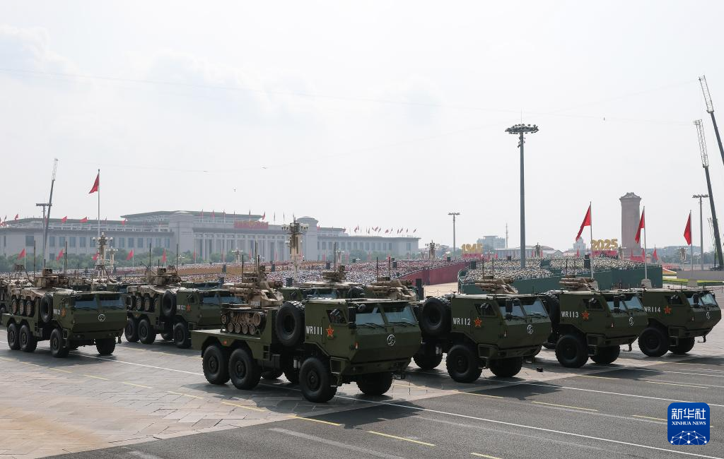 9月3日,紀念中國人民抗日戰(zhàn)爭暨世界反法西斯戰(zhàn)爭勝利80周年大會在北京隆重舉行。這是電子對抗方隊接受檢閱。