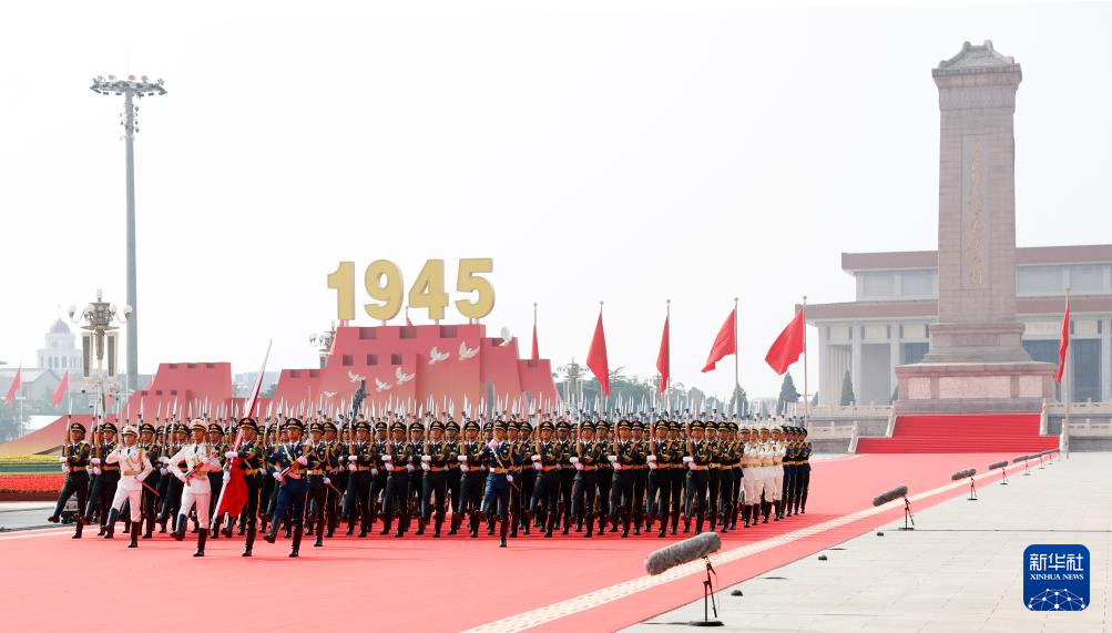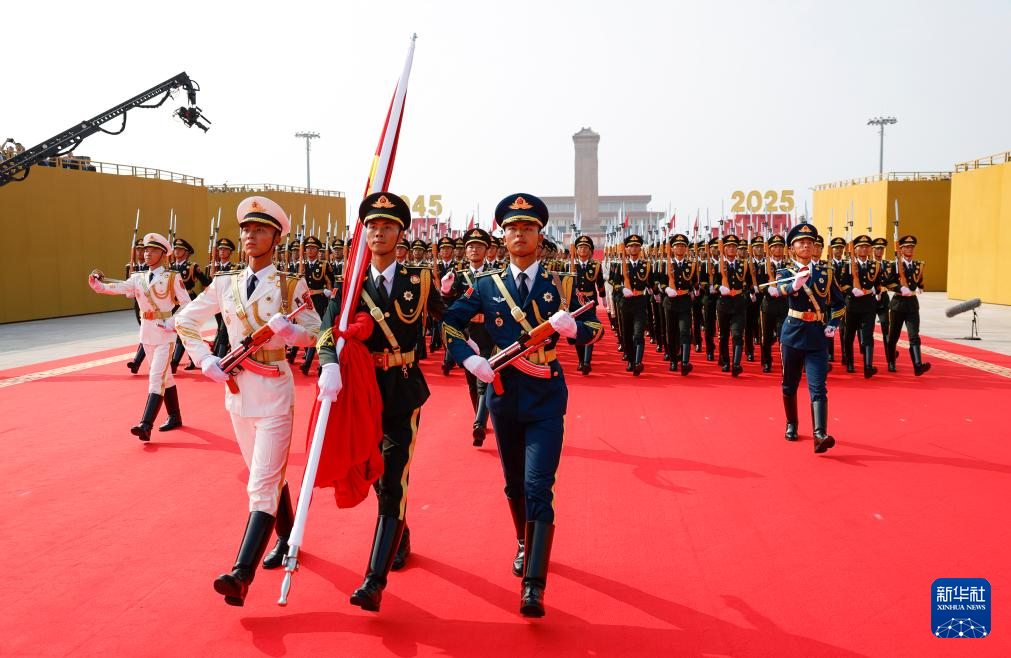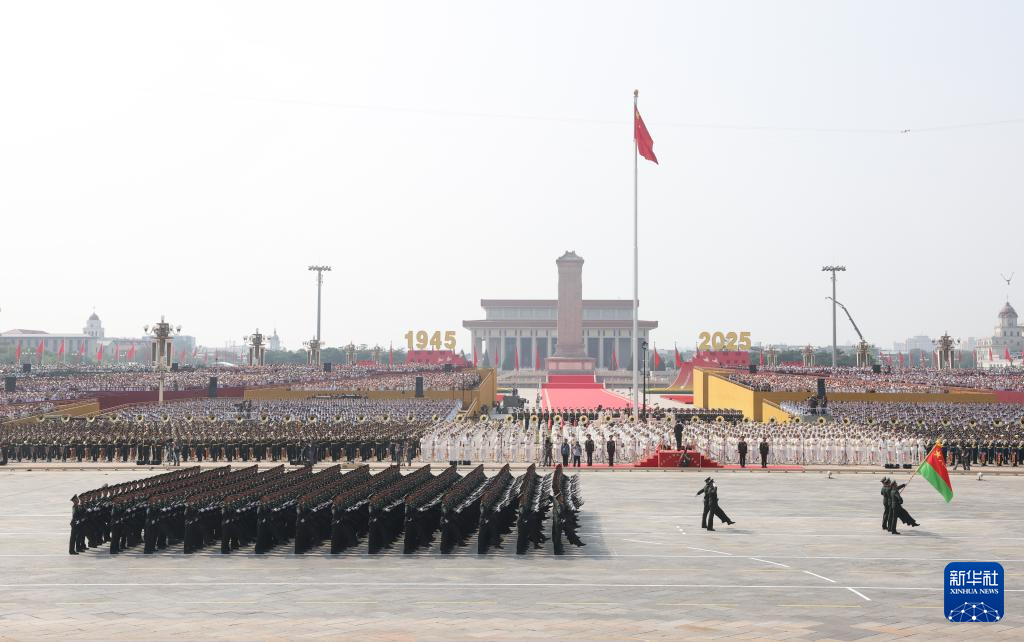 9月3日,紀念中國人民抗日戰(zhàn)爭暨世界反法西斯戰(zhàn)爭勝利80周年大會在北京隆重舉行。這是國旗護衛(wèi)隊在行進中。