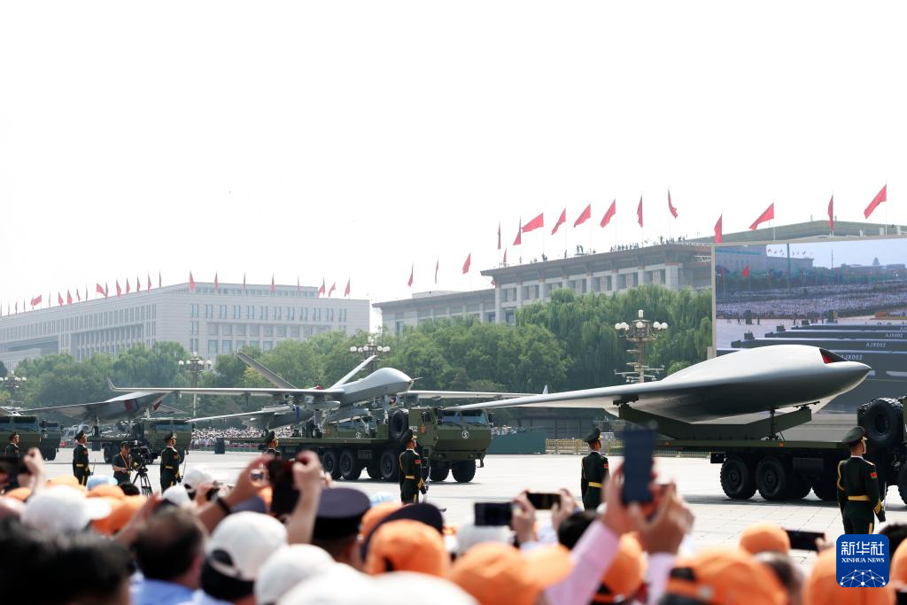 9月3日,紀念中國人民抗日戰(zhàn)爭暨世界反法西斯戰(zhàn)爭勝利80周年大會在北京隆重舉行。這是空中無人作戰(zhàn)方隊接受檢閱。