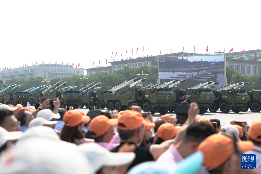 9月3日,紀念中國人民抗日戰(zhàn)爭暨世界反法西斯戰(zhàn)爭勝利80周年大會在北京隆重舉行。這是反艦導(dǎo)彈方隊接受檢閱。