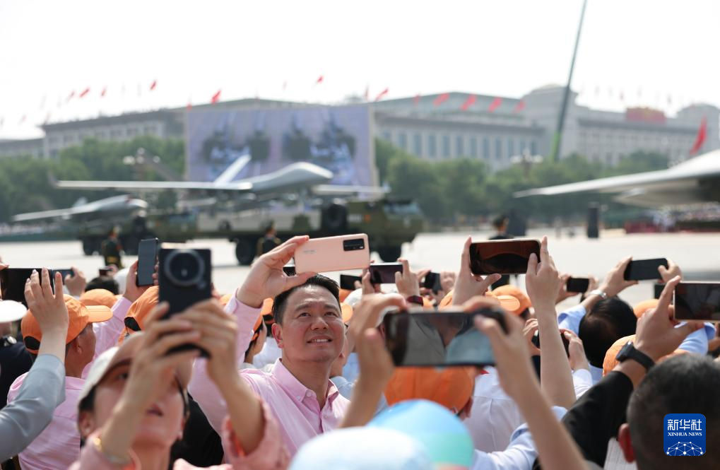 9月3日,紀念中國人民抗日戰(zhàn)爭暨世界反法西斯戰(zhàn)爭勝利80周年大會在北京隆重舉行。這是觀禮嘉賓在拍照。
