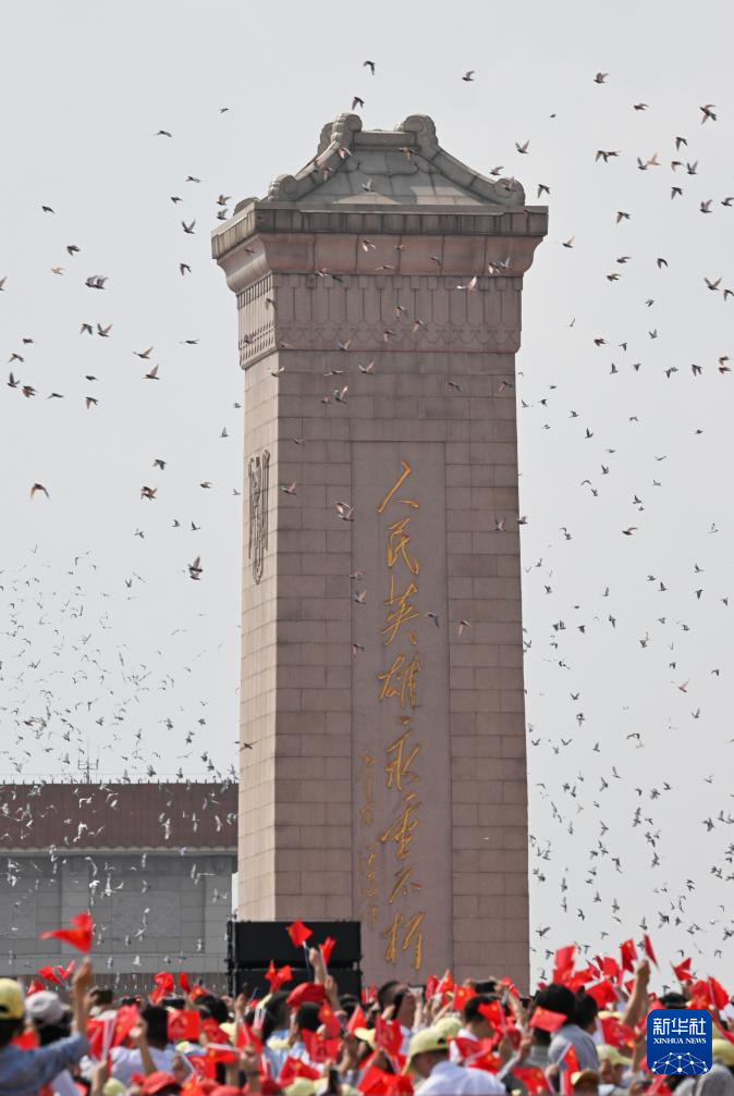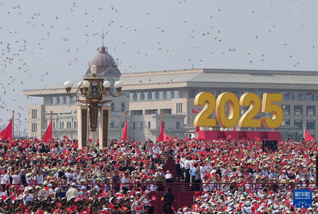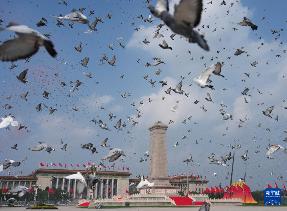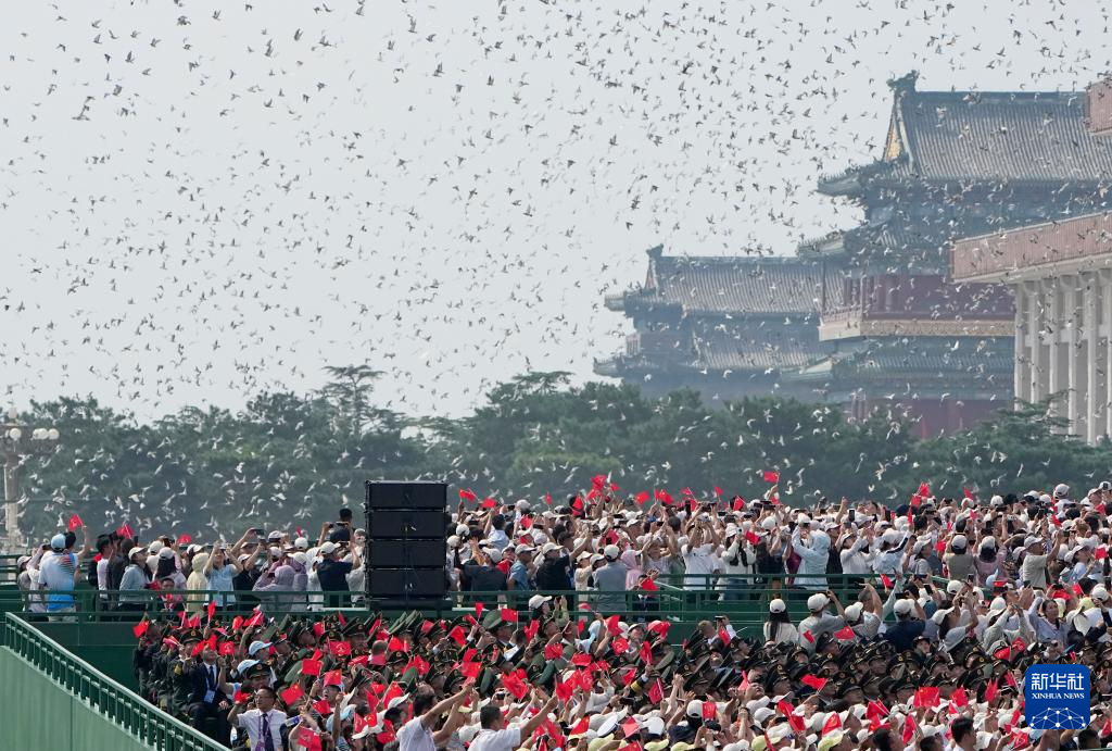 9月3日,紀念中國人民抗日戰(zhàn)爭暨世界反法西斯戰(zhàn)爭勝利80周年大會在北京隆重舉行。這是紀念大會現(xiàn)場放飛鴿子。