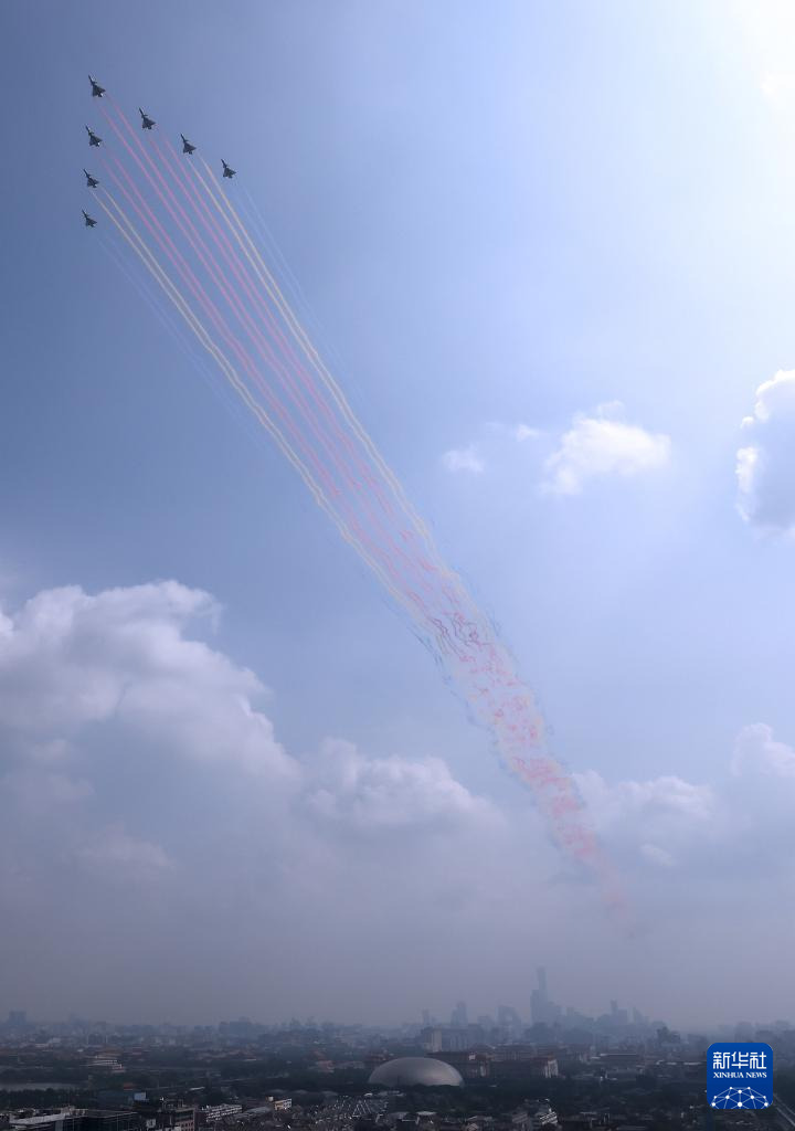 9月3日,紀念中國人民抗日戰(zhàn)爭暨世界反法西斯戰(zhàn)爭勝利80周年大會在北京隆重舉行。這是教練機梯隊接受檢閱。