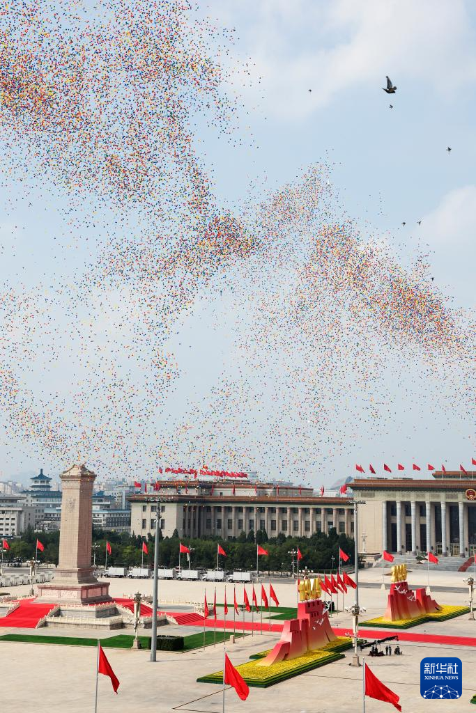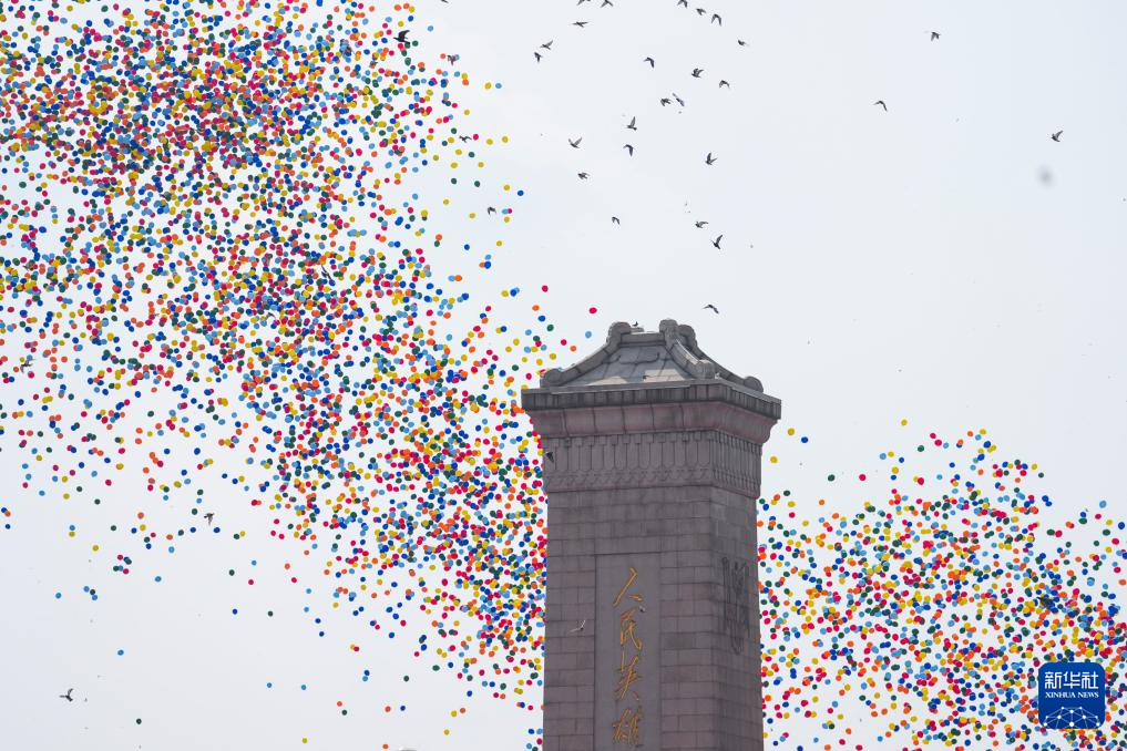9月3日,紀念中國人民抗日戰(zhàn)爭暨世界反法西斯戰(zhàn)爭勝利80周年大會在北京隆重舉行。這是紀念大會現(xiàn)場放飛氣球和鴿子。