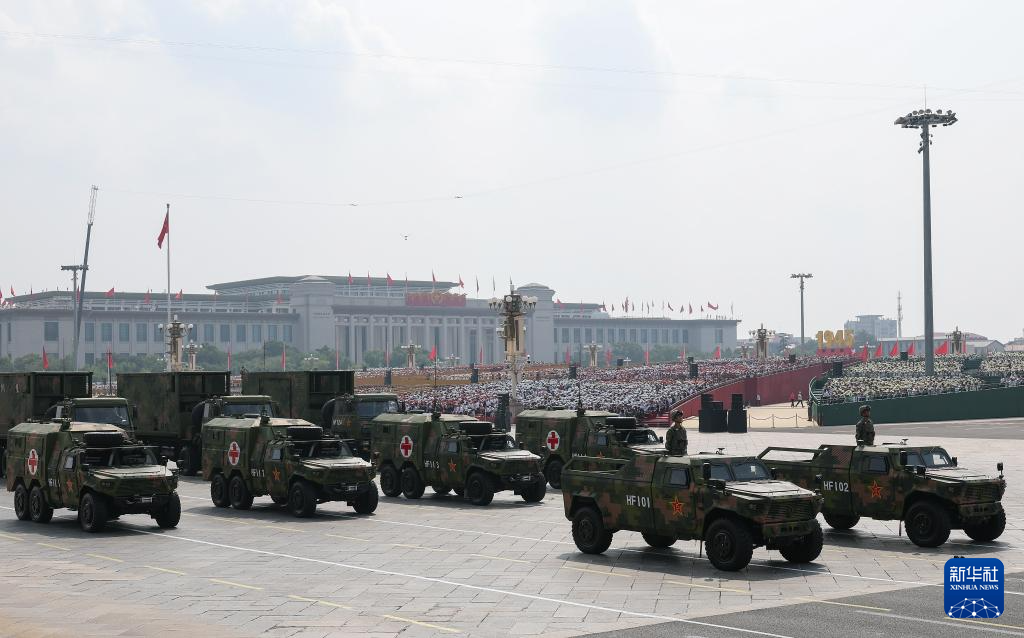 9月3日,紀念中國人民抗日戰(zhàn)爭暨世界反法西斯戰(zhàn)爭勝利80周年大會在北京隆重舉行。這是后勤保障方隊接受檢閱。