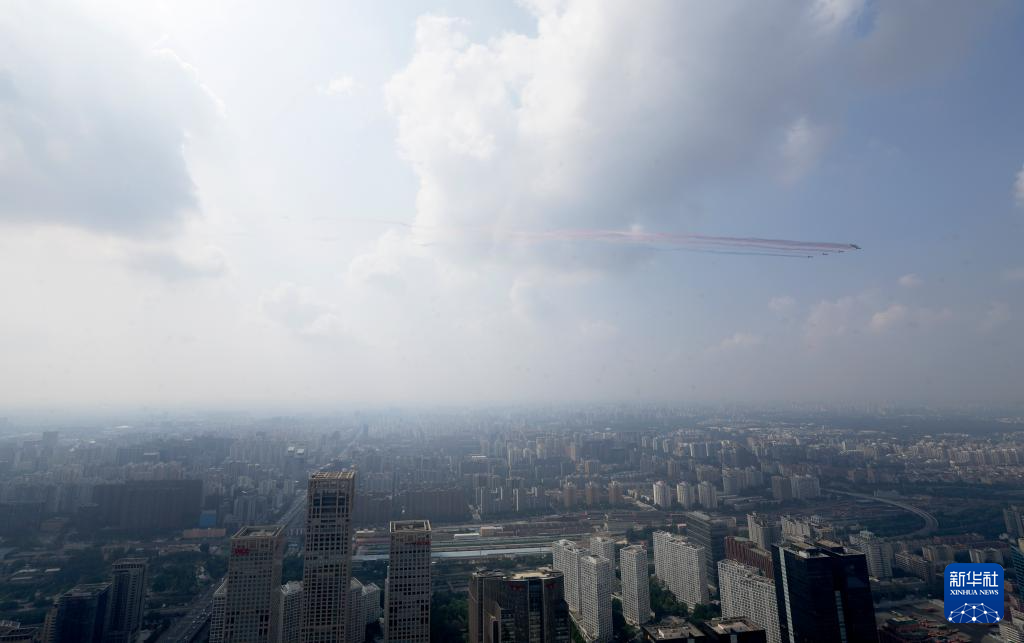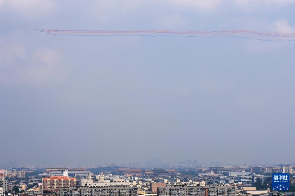 9月3日,紀念中國人民抗日戰(zhàn)爭暨世界反法西斯戰(zhàn)爭勝利80周年大會在北京隆重舉行。這是教練機梯隊通過天安門廣場。