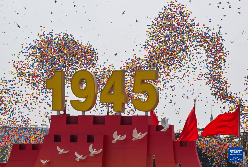 9月3日,紀(jì)念中國人民抗日戰(zhàn)爭暨世界反法西斯戰(zhàn)爭勝利80周年大會在北京隆重舉行。這是紀(jì)念大會現(xiàn)場放飛氣球和鴿子。