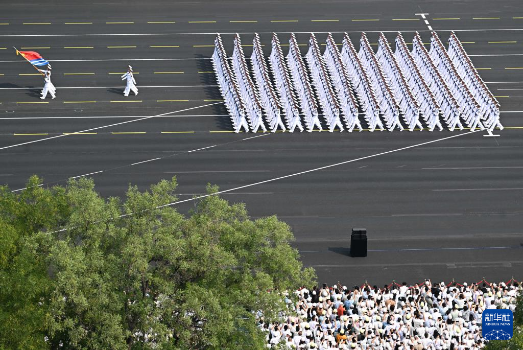 9月3日,紀(jì)念中國人民抗日戰(zhàn)爭暨世界反法西斯戰(zhàn)爭勝利80周年大會在北京隆重舉行。這是海軍方隊通過天安門廣場。