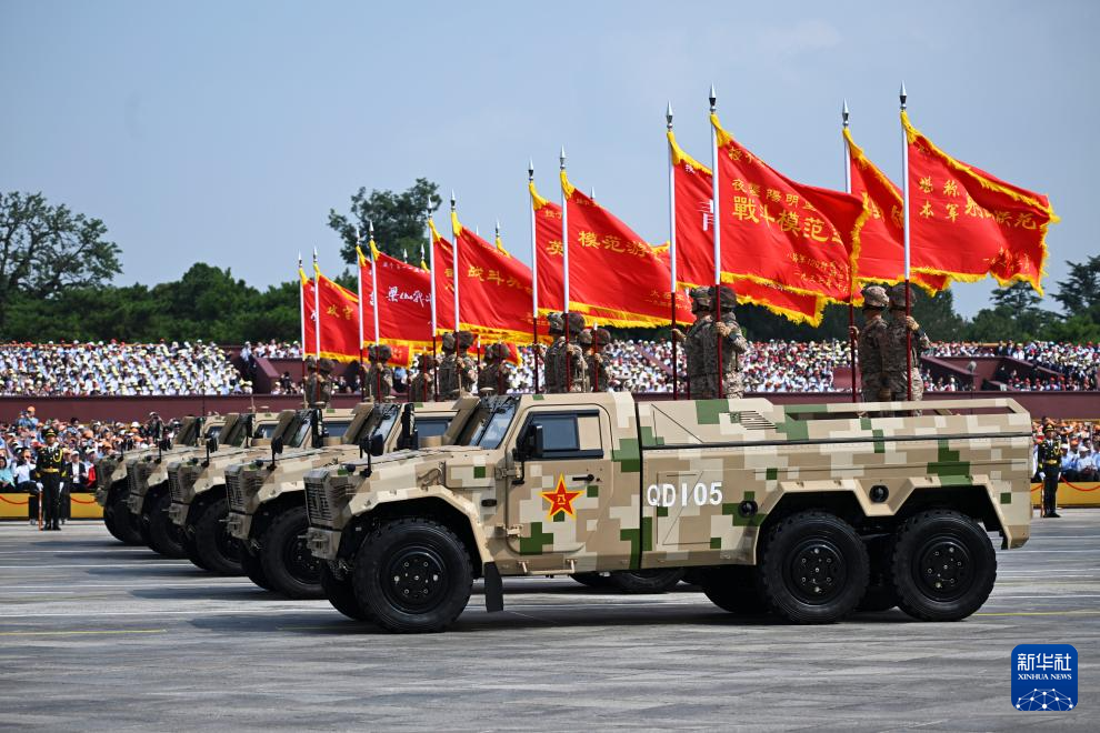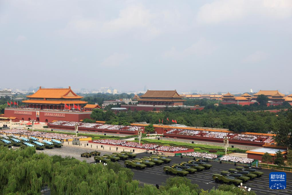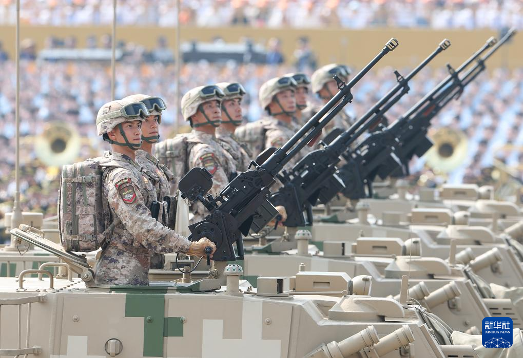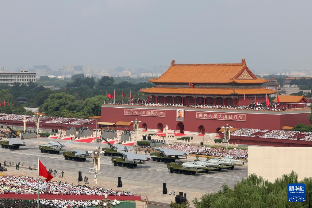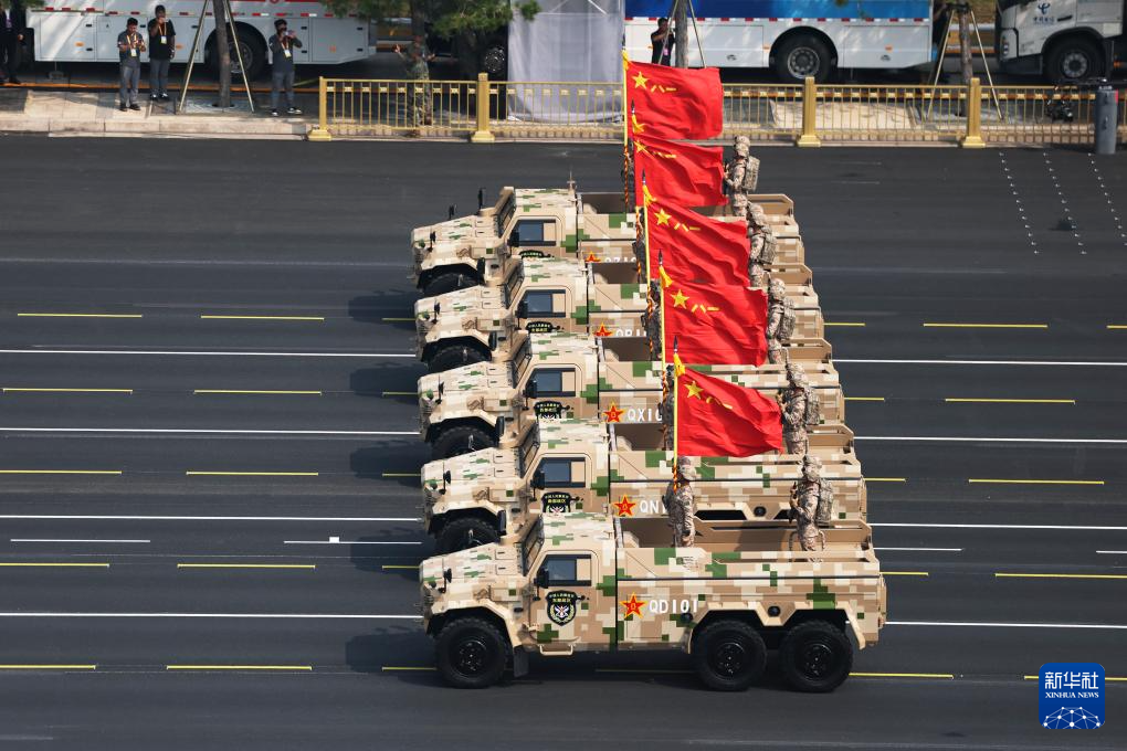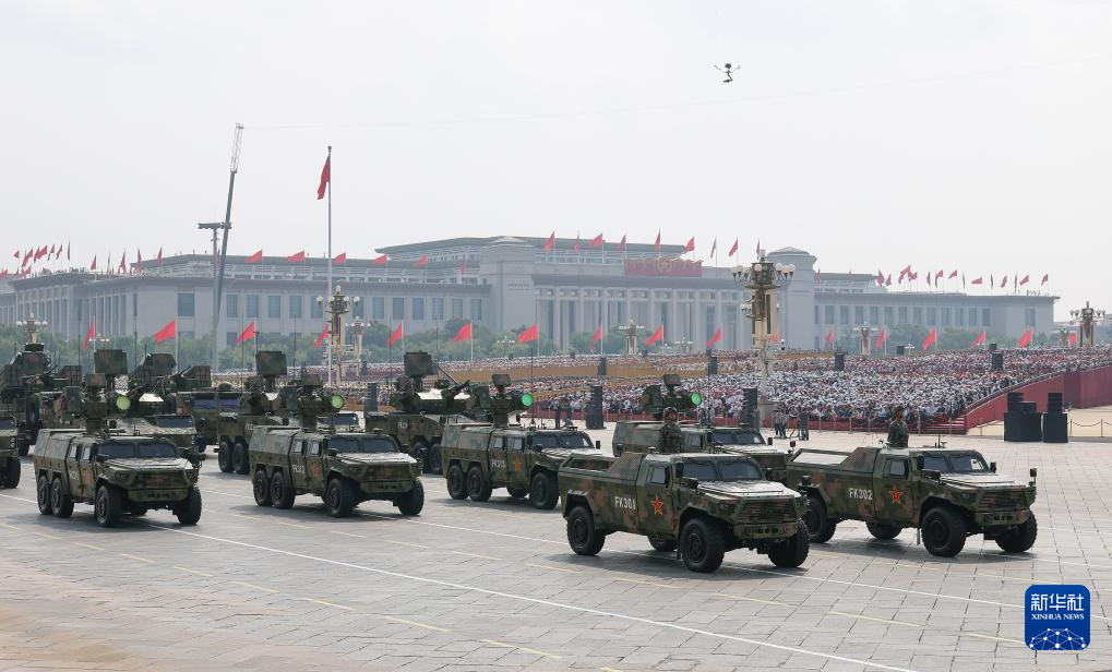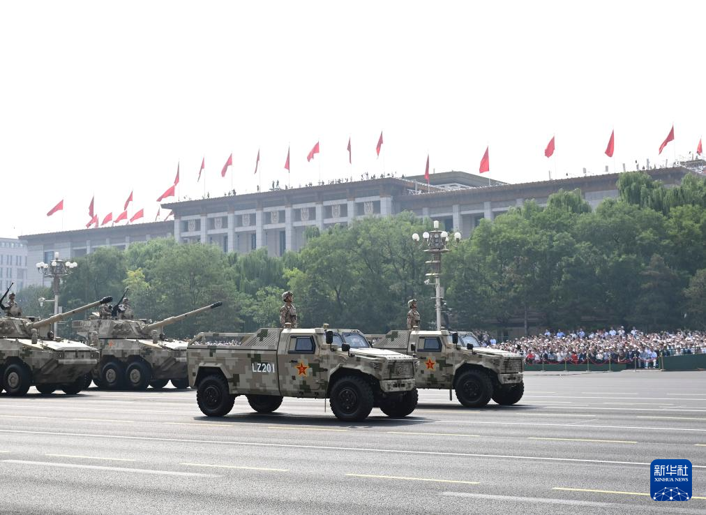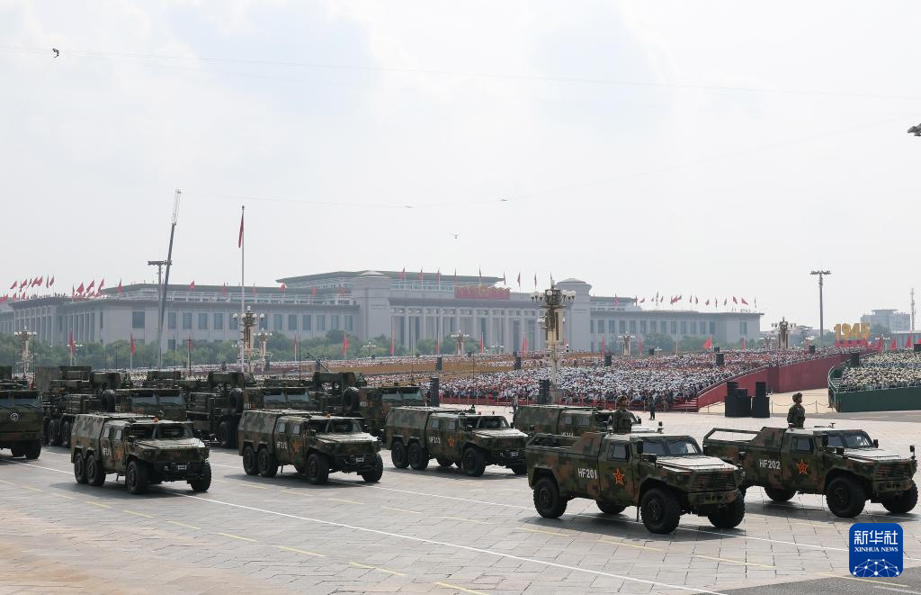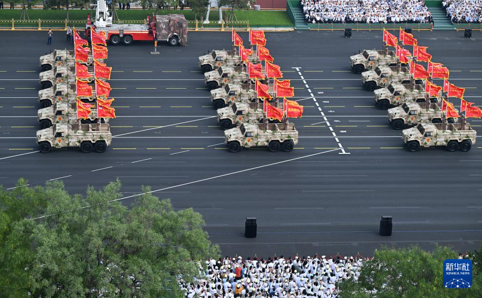 9月3日,紀(jì)念中國人民抗日戰(zhàn)爭暨世界反法西斯戰(zhàn)爭勝利80周年大會在北京隆重舉行。這是裝備方隊接受檢閱。