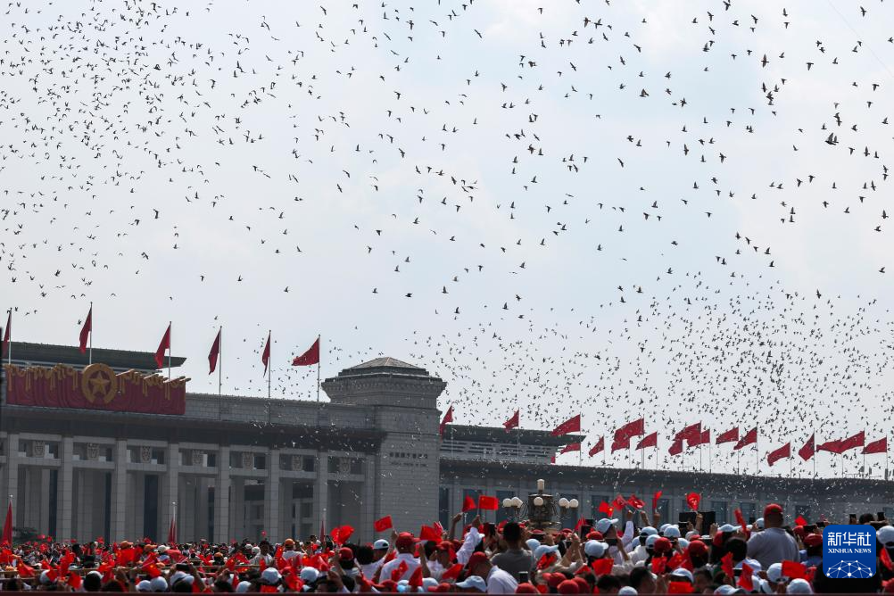 9月3日,紀(jì)念中國人民抗日戰(zhàn)爭暨世界反法西斯戰(zhàn)爭勝利80周年大會在北京隆重舉行。這是紀(jì)念大會現(xiàn)場放飛鴿子。