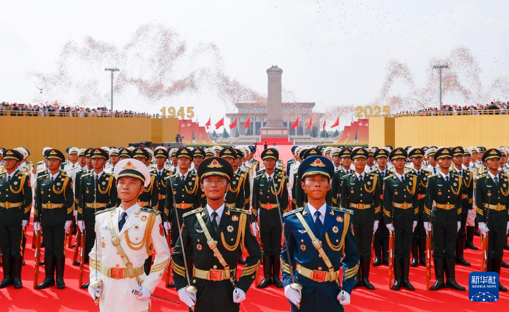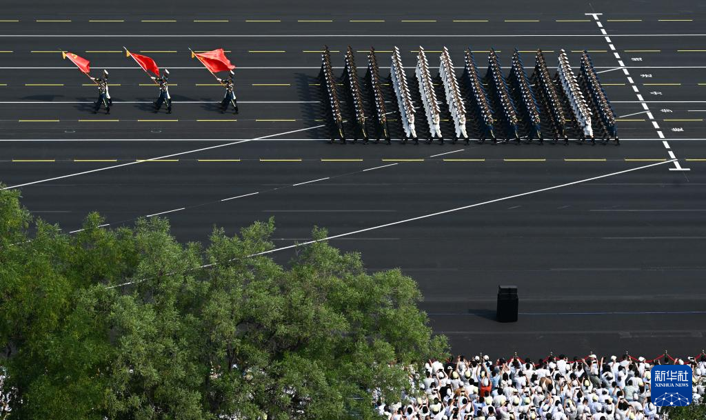9月3日,紀(jì)念中國人民抗日戰(zhàn)爭暨世界反法西斯戰(zhàn)爭勝利80周年大會在北京隆重舉行。這是國旗護(hù)衛(wèi)隊在天安門廣場列隊。