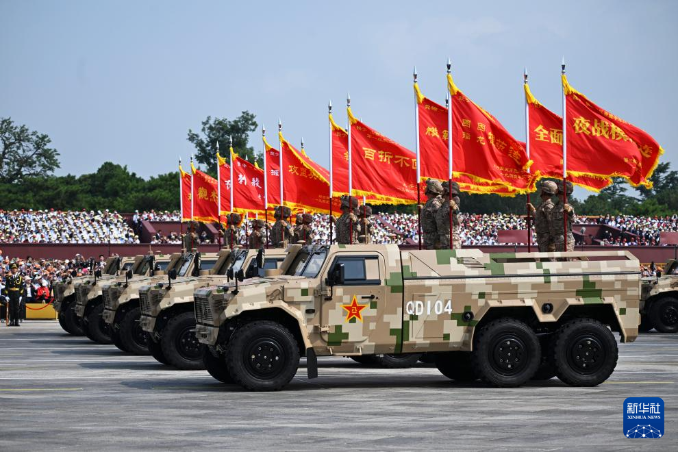 9月3日,紀(jì)念中國人民抗日戰(zhàn)爭暨世界反法西斯戰(zhàn)爭勝利80周年大會在北京隆重舉行。這是裝備保障方隊接受檢閱。