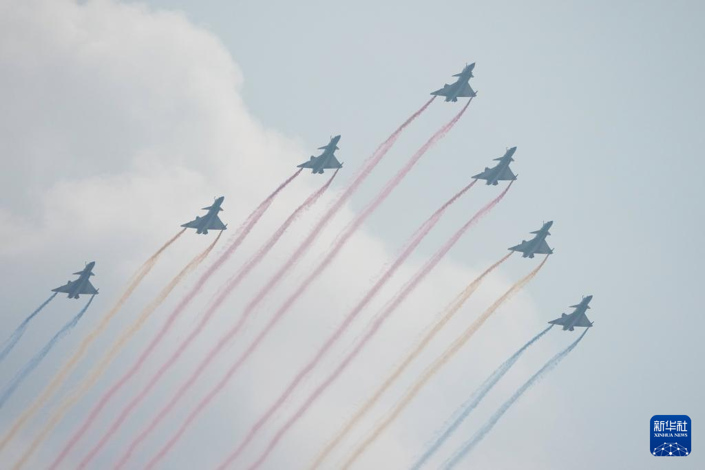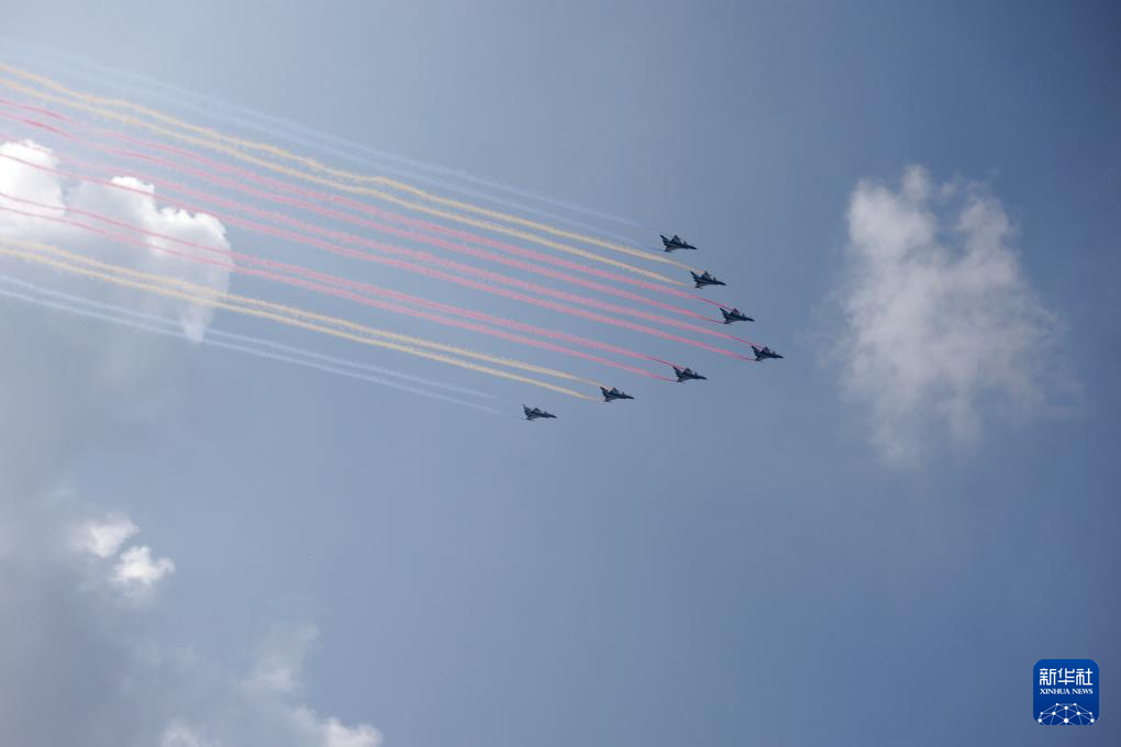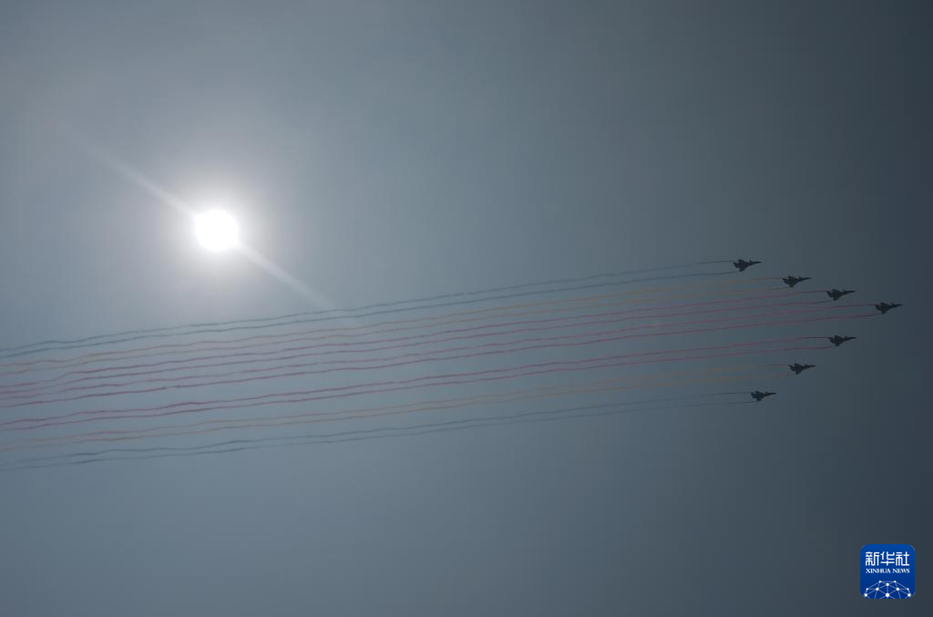 9月3日,紀(jì)念中國(guó)人民抗日戰(zhàn)爭(zhēng)暨世界反法西斯戰(zhàn)爭(zhēng)勝利80周年大會(huì)在北京隆重舉行。這是教練機(jī)梯隊(duì)飛過(guò)天安門廣場(chǎng)上空。