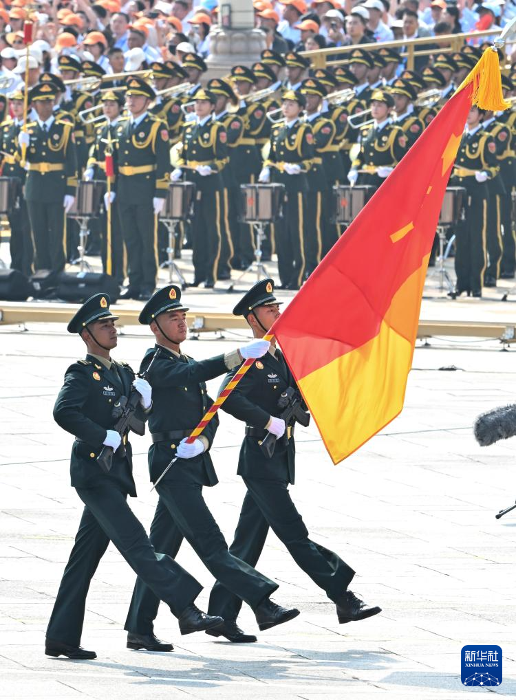 9月3日,紀(jì)念中國(guó)人民抗日戰(zhàn)爭(zhēng)暨世界反法西斯戰(zhàn)爭(zhēng)勝利80周年大會(huì)在北京隆重舉行。這是戰(zhàn)旗方隊(duì)接受檢閱。