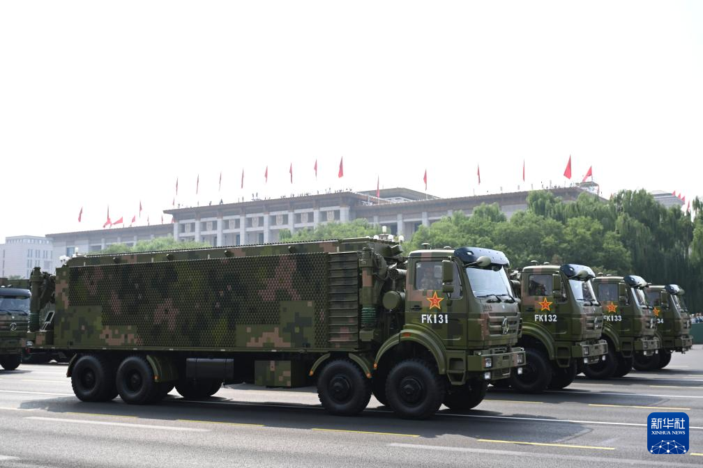 9月3日,紀(jì)念中國(guó)人民抗日戰(zhàn)爭(zhēng)暨世界反法西斯戰(zhàn)爭(zhēng)勝利80周年大會(huì)在北京隆重舉行。這是信息支援方隊(duì)通過(guò)天安門廣場(chǎng)。