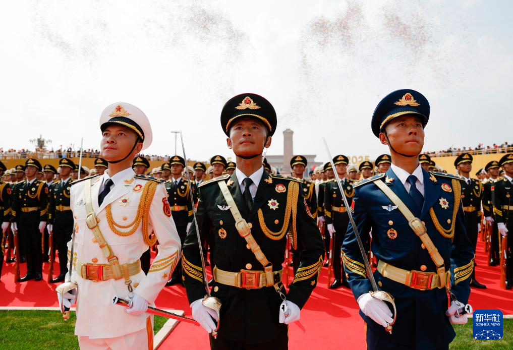 9月3日,紀(jì)念中國(guó)人民抗日戰(zhàn)爭(zhēng)暨世界反法西斯戰(zhàn)爭(zhēng)勝利80周年大會(huì)在北京隆重舉行。這是國(guó)旗護(hù)衛(wèi)隊(duì)在天安門廣場(chǎng)列隊(duì)。
