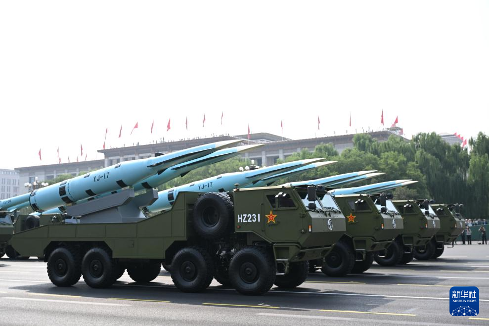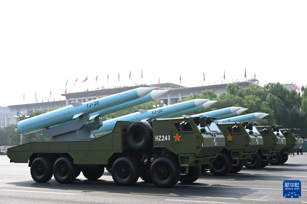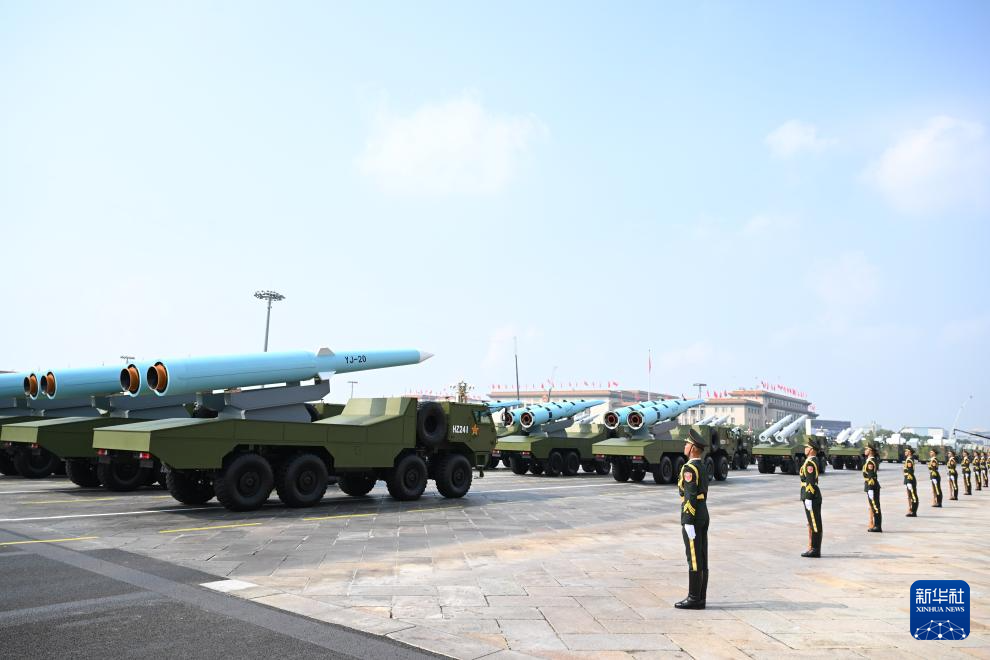 9月3日,紀(jì)念中國(guó)人民抗日戰(zhàn)爭(zhēng)暨世界反法西斯戰(zhàn)爭(zhēng)勝利80周年大會(huì)在北京隆重舉行。這是反艦導(dǎo)彈方隊(duì)接受檢閱。