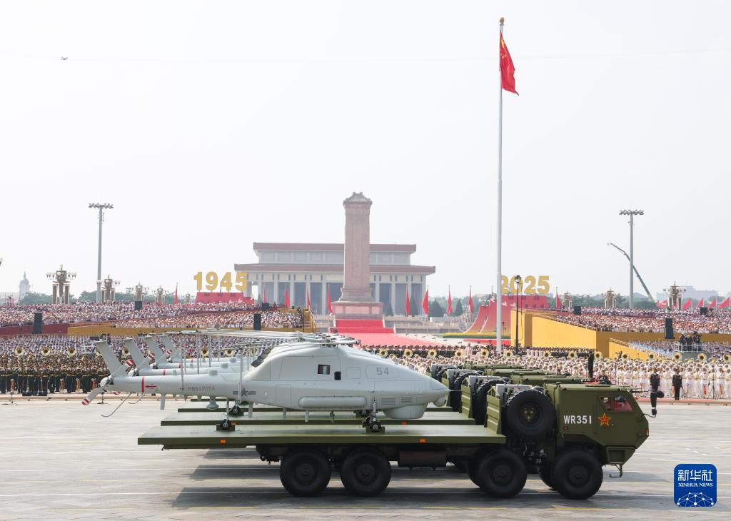 9月3日,紀(jì)念中國(guó)人民抗日戰(zhàn)爭(zhēng)暨世界反法西斯戰(zhàn)爭(zhēng)勝利80周年大會(huì)在北京隆重舉行。這是空中無人作戰(zhàn)方隊(duì)接受檢閱。
