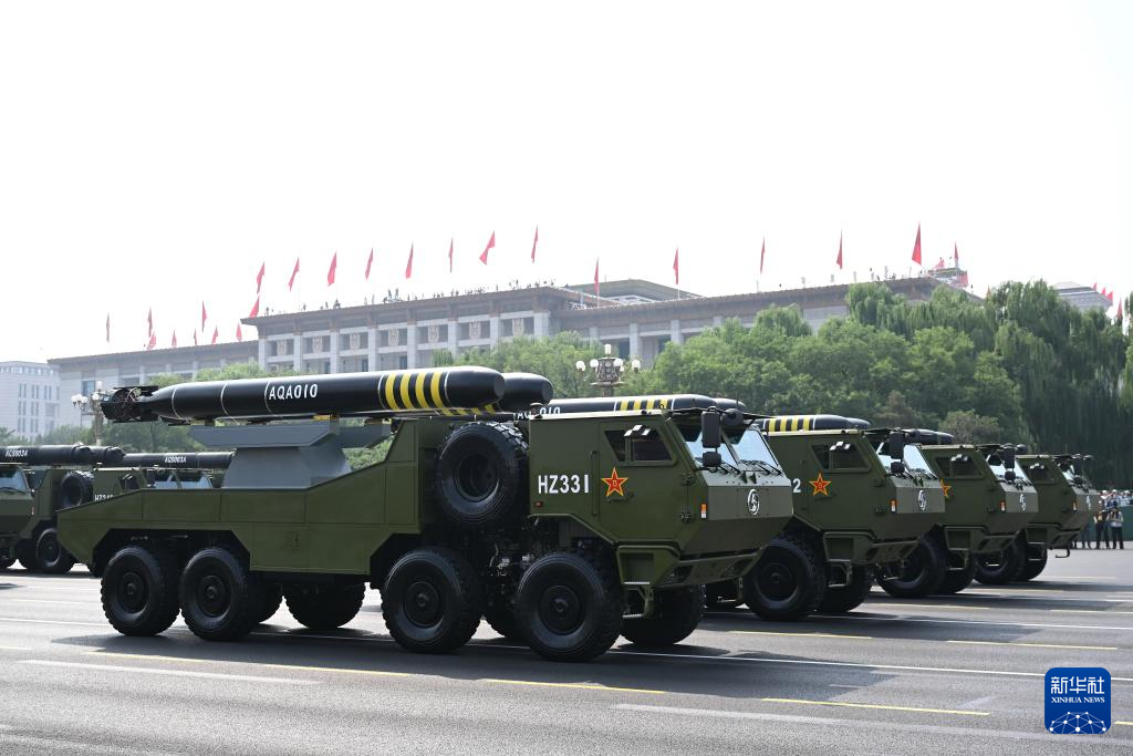 9月3日,紀(jì)念中國(guó)人民抗日戰(zhàn)爭(zhēng)暨世界反法西斯戰(zhàn)爭(zhēng)勝利80周年大會(huì)在北京隆重舉行。這是水下兵器方隊(duì)接受檢閱。