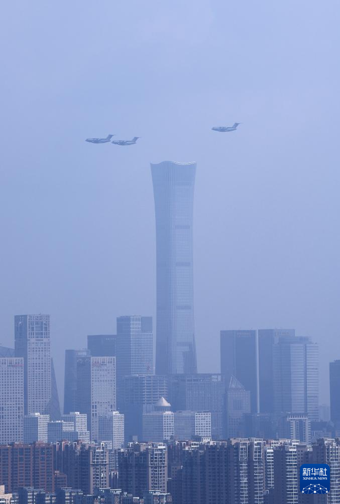 9月3日,紀(jì)念中國(guó)人民抗日戰(zhàn)爭(zhēng)暨世界反法西斯戰(zhàn)爭(zhēng)勝利80周年大會(huì)在北京隆重舉行。這是運(yùn)輸機(jī)梯隊(duì)接受檢閱。