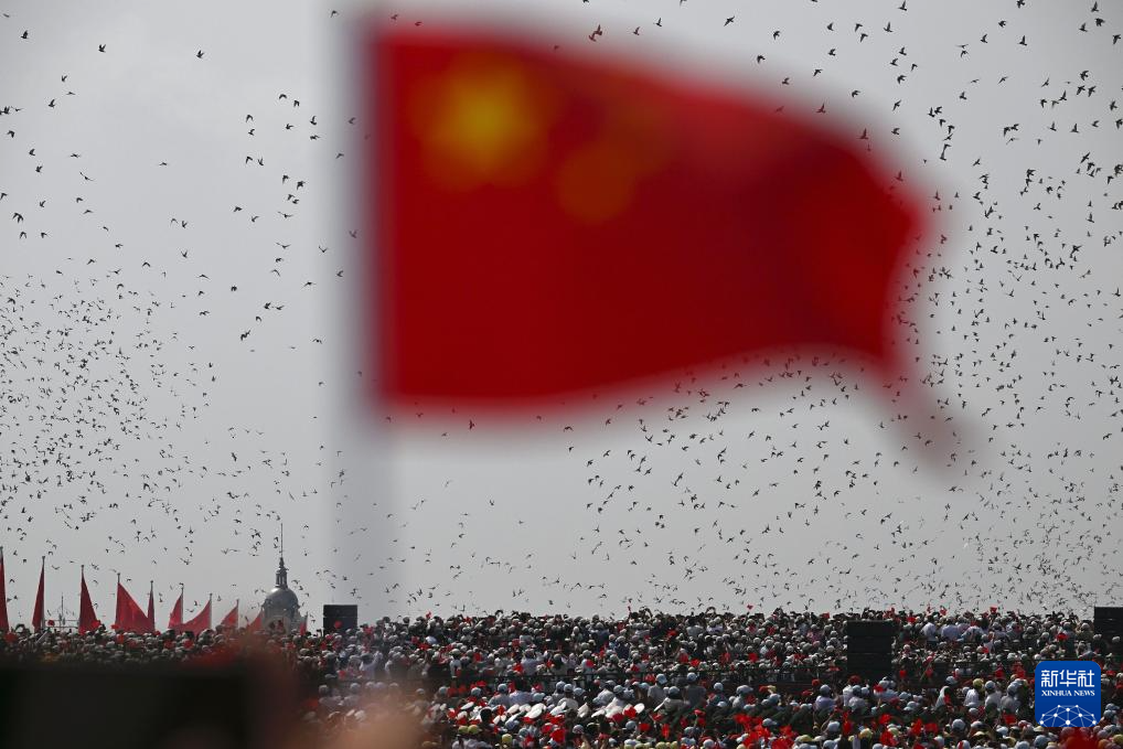 9月3日,紀(jì)念中國(guó)人民抗日戰(zhàn)爭(zhēng)暨世界反法西斯戰(zhàn)爭(zhēng)勝利80周年大會(huì)在北京隆重舉行。這是紀(jì)念大會(huì)現(xiàn)場(chǎng)放飛和平鴿。