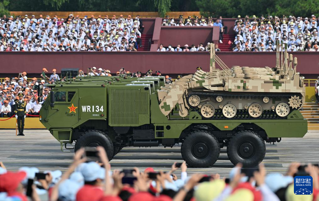 9月3日,紀(jì)念中國(guó)人民抗日戰(zhàn)爭(zhēng)暨世界反法西斯戰(zhàn)爭(zhēng)勝利80周年大會(huì)在北京隆重舉行。這是陸上無(wú)人作戰(zhàn)方隊(duì)通過(guò)天安門(mén)廣場(chǎng)。