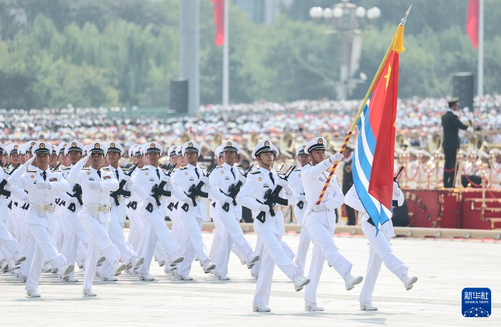 9月3日,紀(jì)念中國(guó)人民抗日戰(zhàn)爭(zhēng)暨世界反法西斯戰(zhàn)爭(zhēng)勝利80周年大會(huì)在北京隆重舉行。這是海軍方隊(duì)接受檢閱。