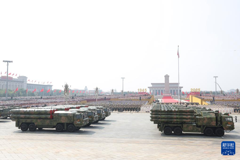 9月3日,紀(jì)念中國(guó)人民抗日戰(zhàn)爭(zhēng)暨世界反法西斯戰(zhàn)爭(zhēng)勝利80周年大會(huì)在北京隆重舉行。這是反艦導(dǎo)彈方隊(duì)接受檢閱。