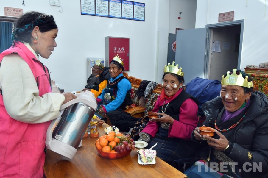 中國西藏網(wǎng)訊 冬日的暖陽透過玻璃窗,灑進西藏日喀則定結縣郭加鄉(xiāng)切村幸福院。老人們圍坐在色彩絢麗的卡墊上,手捧甜茶,一同慶祝集體生日。溫暖的光線下,每張臉上,都洋溢著安寧而滿足的笑容。這座由村級閑置房屋改造而成的院落,如今已成為村里65位老人共同的“家”。