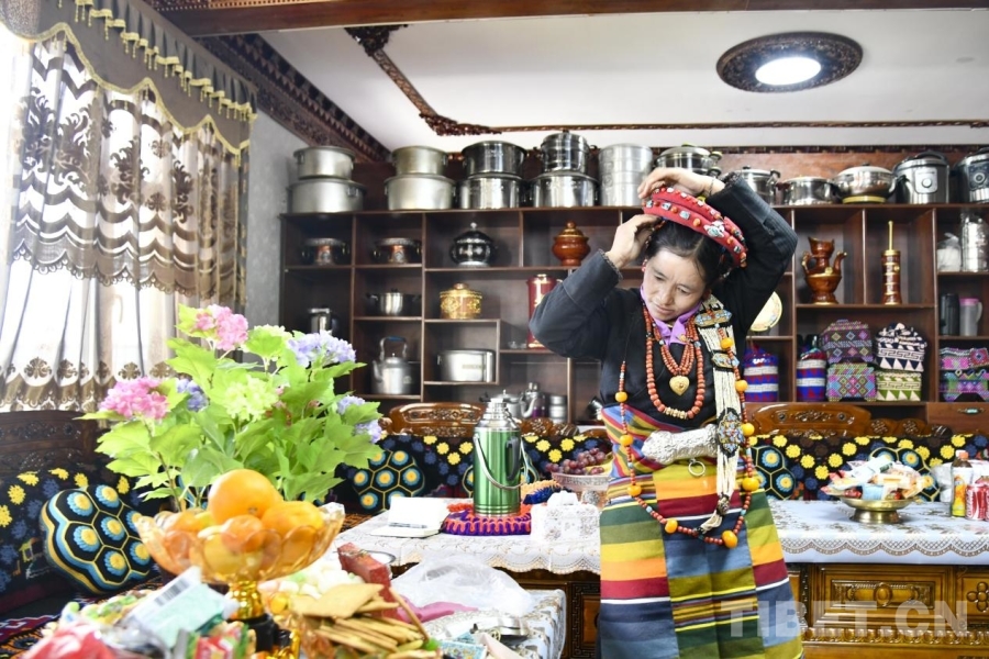 圖為薩迦縣雄麥鄉(xiāng)扎果村村民佩戴起為新年所準(zhǔn)備的新首飾(攝于2026年1月6日) 攝影:趙振宇