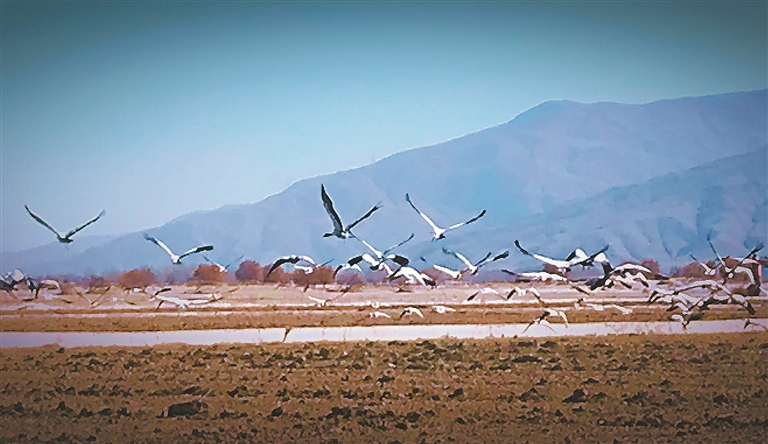 拉薩市林周縣境內(nèi)的黑頸鶴。記者 白瑪澤旺 攝