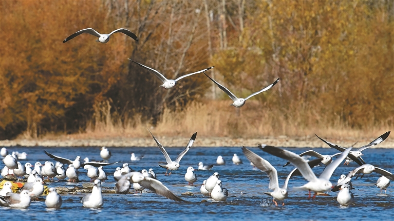 拉薩河畔的候鳥(niǎo)。記者 唐斌 攝