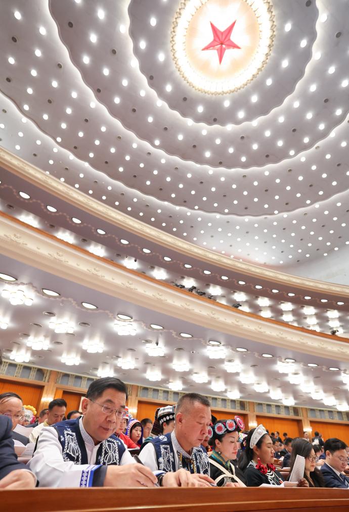 3月8日,十四屆全國人大三次會議在北京人民大會堂舉行第二次全體會議。新華社記者 盧燁 攝