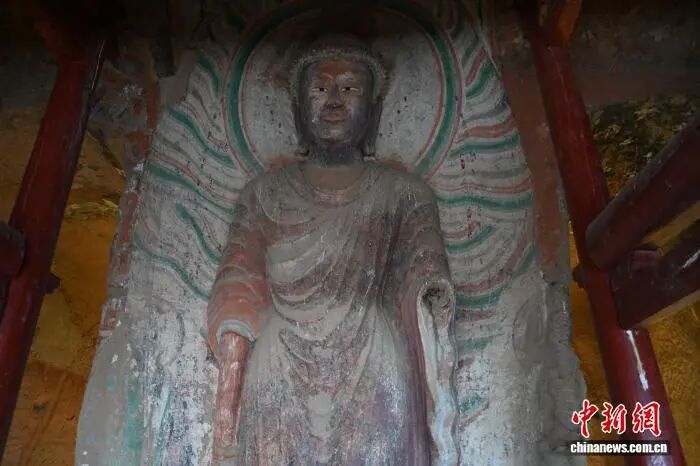 圖為馬蹄寺石窟群窟龕里的彩塑。戴文昌 攝