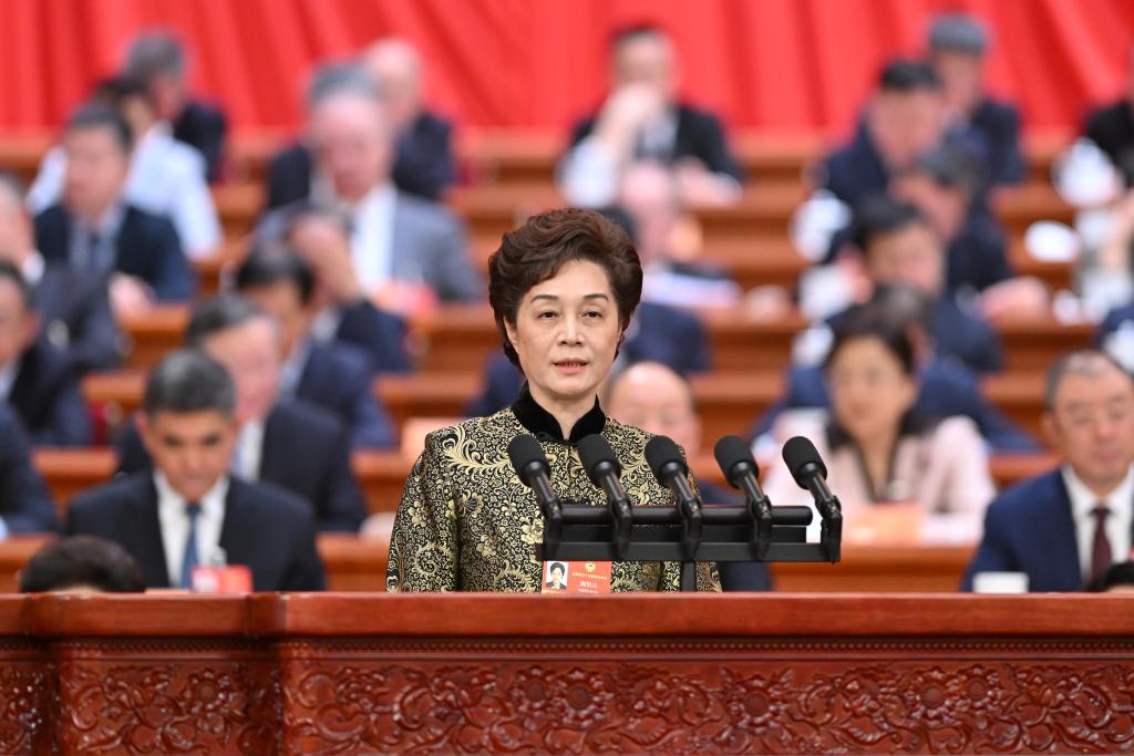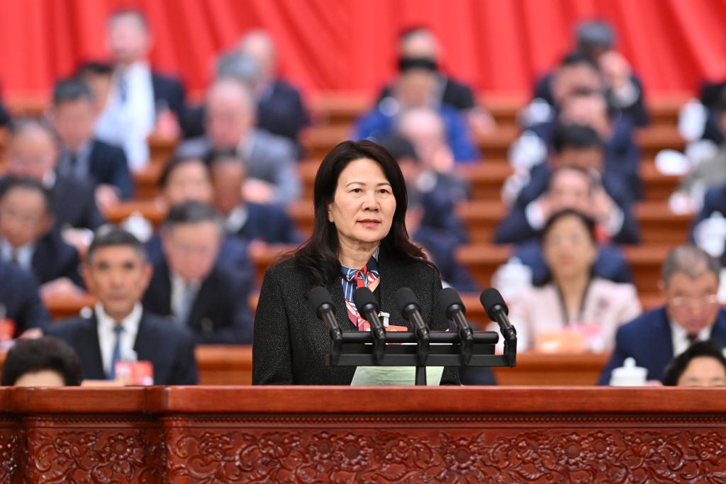 3月7日,全國(guó)政協(xié)十四屆四次會(huì)議在北京人民大會(huì)堂舉行第二次全體會(huì)議。這是賀丹委員作題為《優(yōu)化生育支持政策和激勵(lì)措施 構(gòu)建積極生育保障體系》的發(fā)言。新華社記者 岳月偉 攝