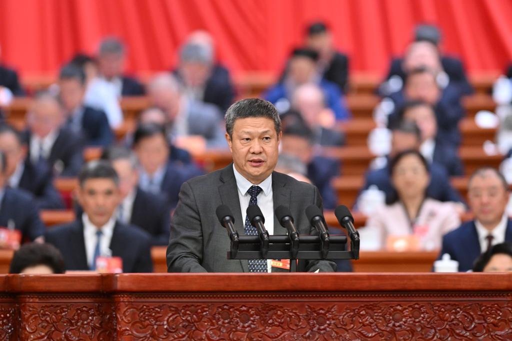 3月7日,全國(guó)政協(xié)十四屆四次會(huì)議在北京人民大會(huì)堂舉行第二次全體會(huì)議。這是解冬委員代表民建中央作題為《推動(dòng)科技創(chuàng)新和產(chǎn)業(yè)創(chuàng)新深度融合 塑造高質(zhì)量發(fā)展新動(dòng)能》的發(fā)言。新華社記者 劉衛(wèi)兵 攝