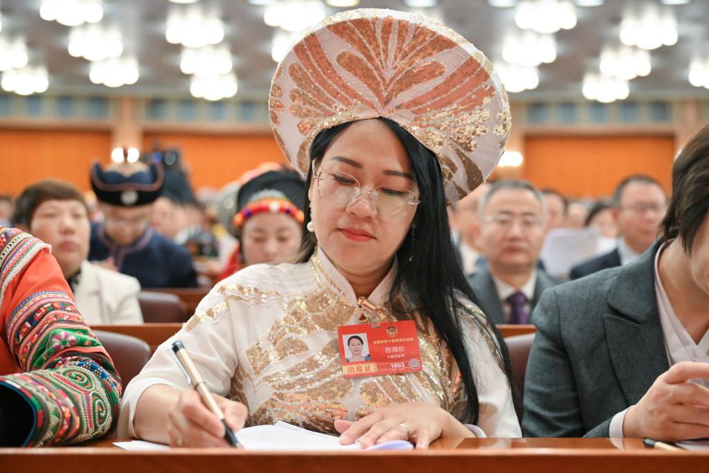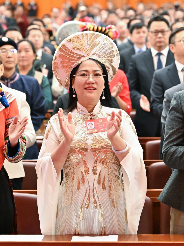 3月4日,蘇海珍委員在全國(guó)政協(xié)十四屆四次會(huì)議開(kāi)幕會(huì)上。新華社記者 陳益宸 攝