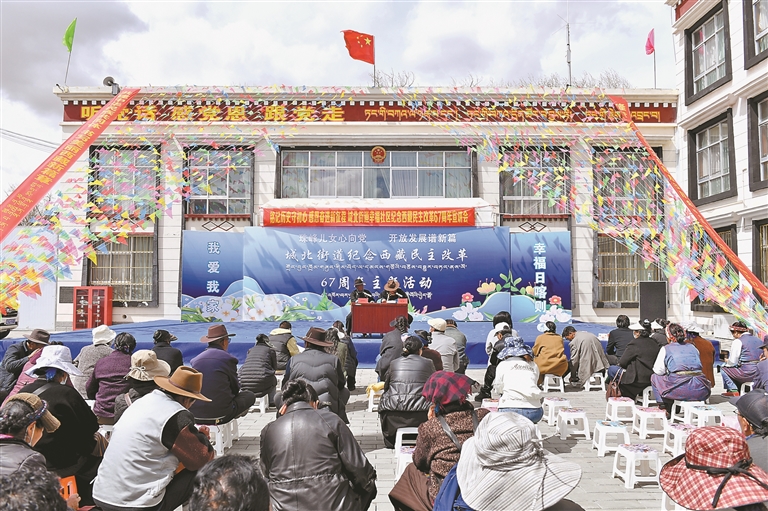 日喀則桑珠孜區(qū)城北街道幸福社區(qū)開展紀念西藏民主改革67周年宣講會現場。記者 旦增嘎瓦 攝
